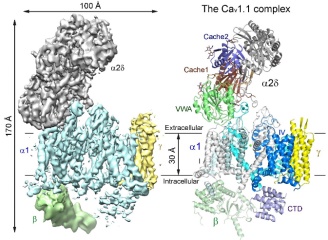 颜宁研究组揭示真核电压门控钙离子通道复合物Cav1.1的三维结构