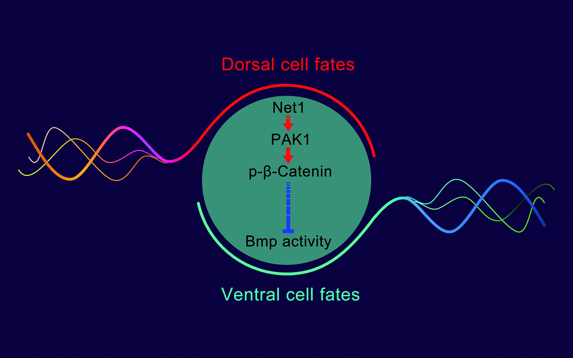 Net1是一种鸟核苷酸交换因子,在多种肿瘤细胞中高表达,通过激活小G蛋白RhoA促进肿瘤细胞侵袭和转移。中国科学院动物研究所王强研究员领导研究团队发现,斑马鱼的net1是MBT前后最早表达的合子基因之一,特异表达于预定背部组织中心。抑制net1表达,斑马鱼背部组织中心的形成受到严重的影响,背部组织明显减少。胚胎和哺乳动物细胞中的实验表明,Net1及其鸟核苷酸交换因子活性对于Wnt/β-catenin信号转导和背部组织发育不可或缺。进一步的研究发现,Net1通过激活RhoA家族的G蛋白,干扰PAK1二聚体的形成,激活PAK1激酶活性,从而磷酸化β-catenin 675位丝氨酸,抑制β-catenin与组蛋白去乙酰化酶HDAC结合,促进Wnt靶基因转录,在胚胎背部组织中心形成和背腹轴建立过程中发挥重要作用。此项研究揭示了在胚胎发育过程中,Net1所调控的β-catenin 675位丝氨酸的磷酸化修饰,是MBT后β-catenin转录活性增强,激活下游基因表达的必要条件。Wnt/β-catenin信号通路及Net1促进多种肿瘤细胞侵袭和转移。因此,该研究还为深入了解肿瘤发生发展的分子机制提供了新的线索。