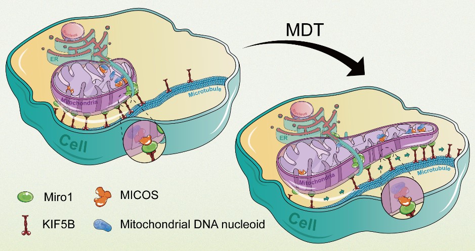 图3. 线粒体动态管化介导拟核运输的分子机制模型