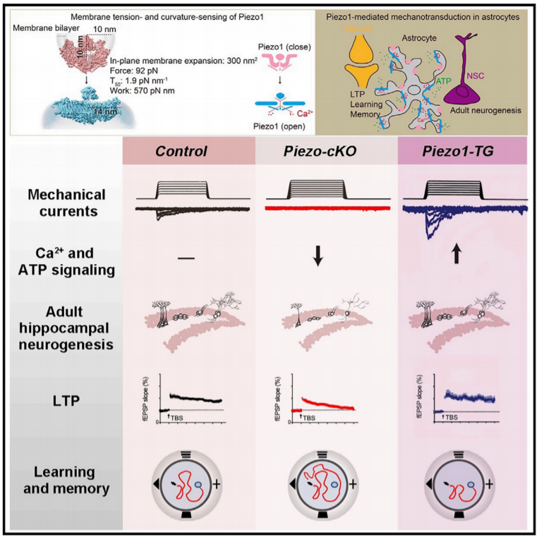 Neuron | 清华大学肖百龙团队发现星形胶质细胞Piezo1介导的机械转导决定成人神经发生和认知功能